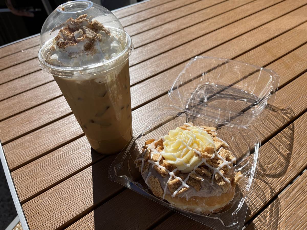 It’s easy to forget about the cold brew coffees with so many incredible-looking donuts, but remember you’ll need something to wash them down with. The restaurant serves milk, but we chose a Cinnamon Bun iced coffee to go with a Cinnamon Toast Crunch donut. What a pairing!