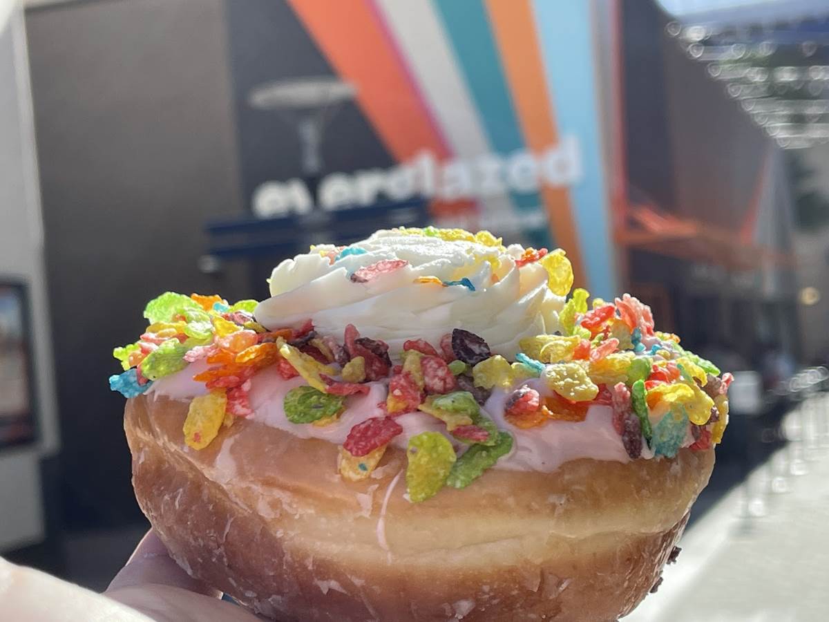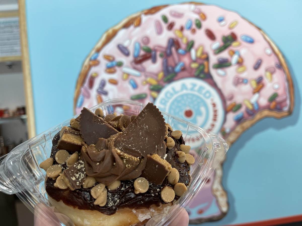 Many of the donuts are decorated with classic candy and cereals. Peanut Butter Explosion includes halved peanut butter cups on top.