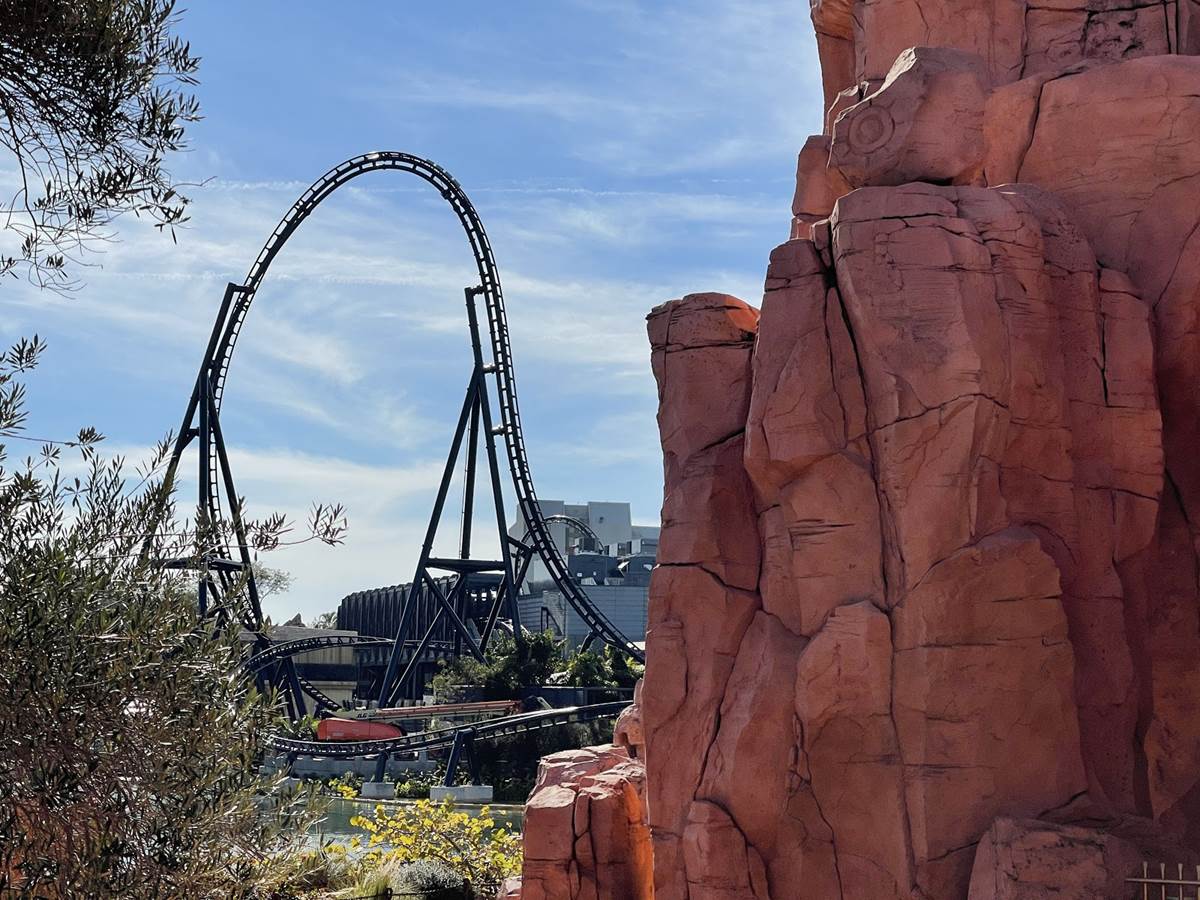 - Construction is a loose term as most of the visible work and coaster track is complete, and much of the efforts have been moved to the interior of the attraction. While it wasn’t occurring while we were there today, coaster trains have also been seen traversing the course of the layout while Team Members continue to test and adjust the new high speed thrill ride.