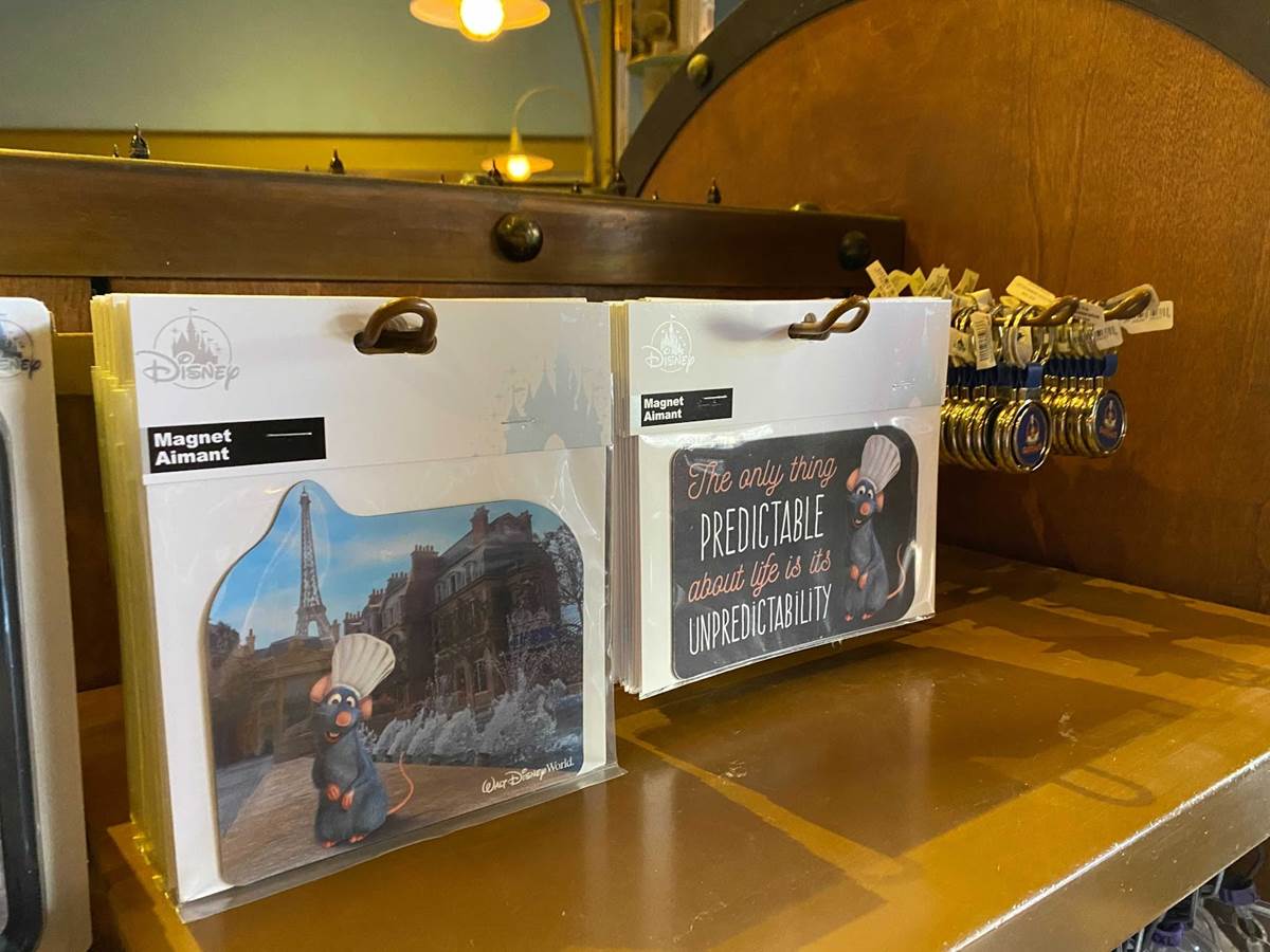 - Magnets are part of the offering, one featuring Remy, the star of the 2006 Pixar Animation Studios Film, Ratatouille, in front of the France Pavilion with the park’s Eiffel Tower and familiar fountain as the backdrop. This image is also carried over to phone cases which are also available, and on newer model iPhones as well, which are notoriously known for being harder to find at the moment.