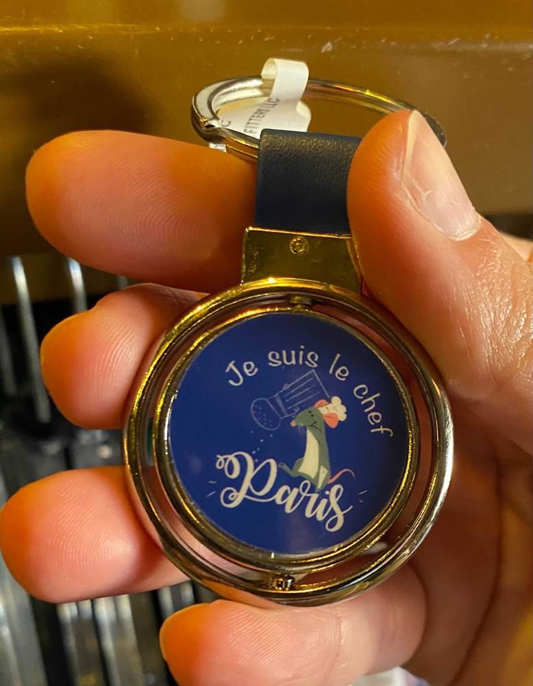 - One fun item is also a keychain with rotating images. One side features a stylized Remy and the words “Je suis le Chef Paris” (I am the chef in Paris), and on the other side the familiar logo for the restaurant that serves as the setting for both the film, and the upcoming attraction, Gusteau’s.