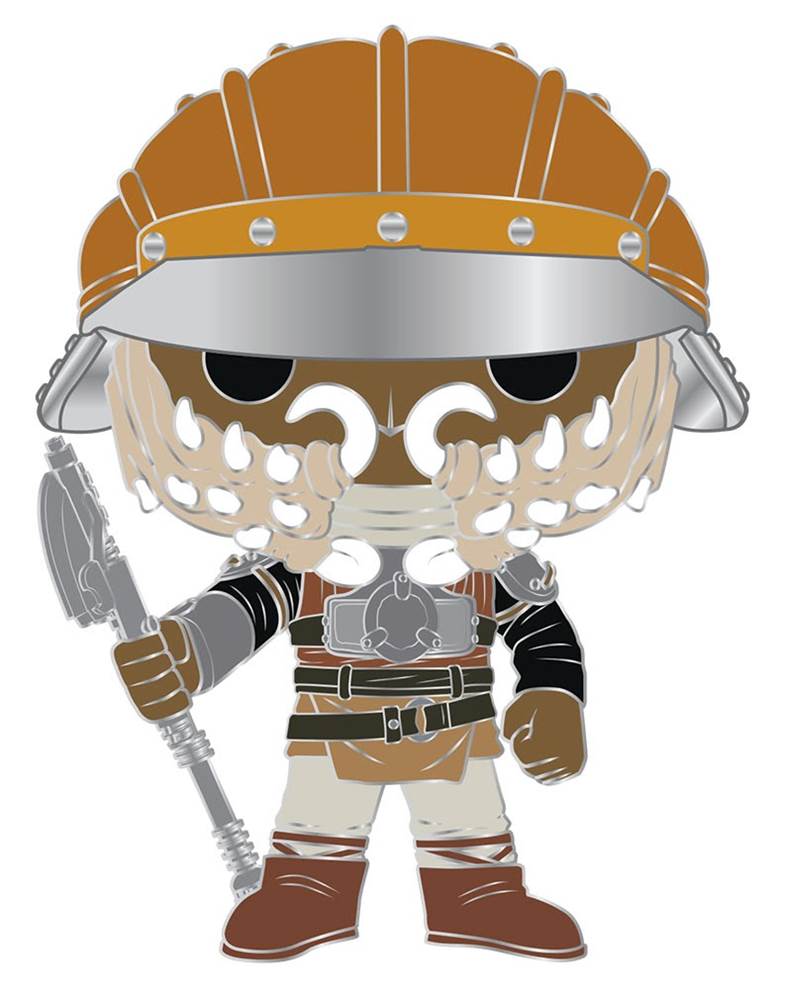 “Decorate your favorite jacket, bag, or pinboard like it’s Jabba’s palace with a new line of enamel pins featuring Jabba the Hutt, Leia and Lando in disguise, and poor Han still stuck in carbonite.” Available at Hop Topic.