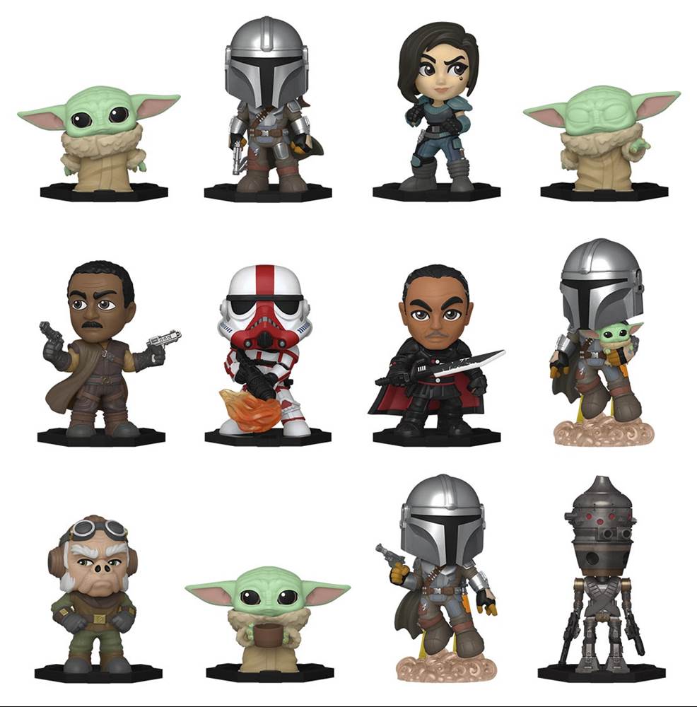 “The next line of Mystery Minis celebrate Season 1 of The Mandalorian with petite versions of Mando, The Child, Moff Gideon, Greef Karga, Cara Dune, Kuiil, and IG-11, as well as a fearsome flametrooper. Available at GameStop.”