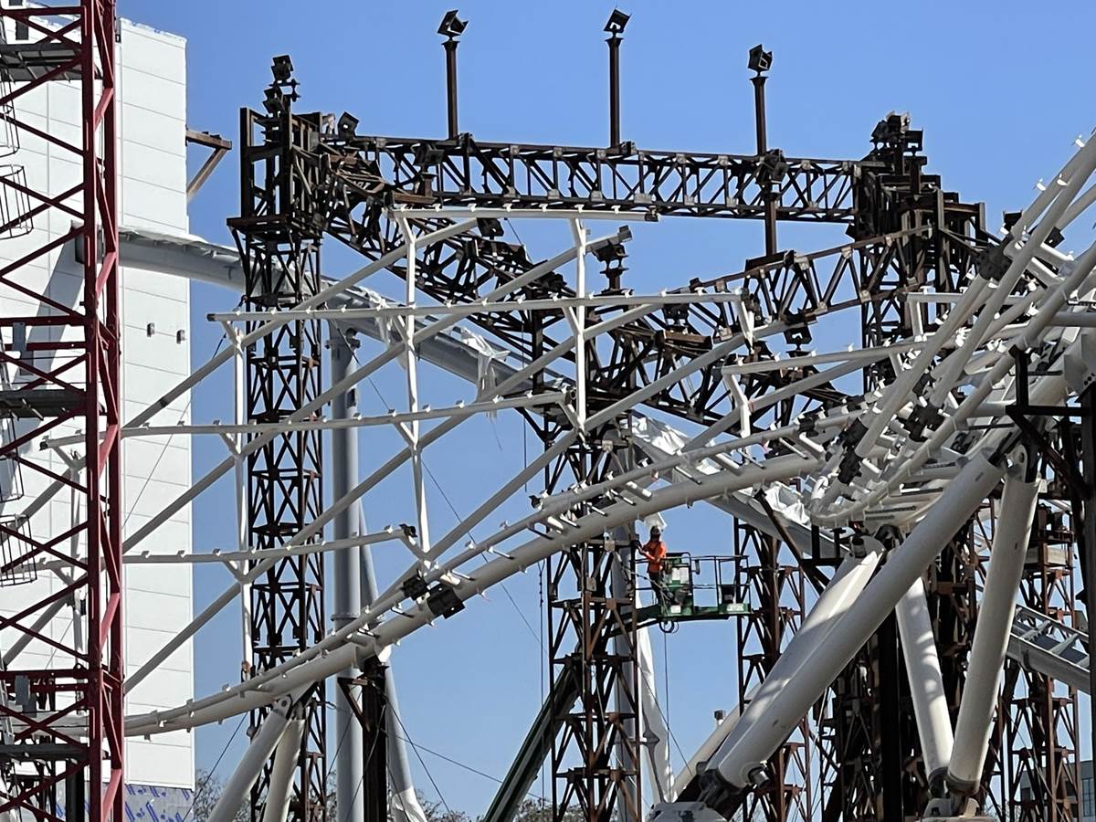 - As we look at the progress from this vantage point you can see that more of the canopy that will cover the exterior track is taking shape. New structure and pylons that almost look like additional coaster tracks are actually for this canopy.