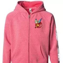 This youth zip-up sweatshirt features an exclusive design concept art of Fifinella, created by Roald Dahl and The Walt Disney Studios and used as an insignia by The Women’s Air Force Pilots, printed in a multicolor embroidery.