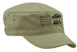 This military-style flat top hat is made from 100% organic cotton twill in army green and features the museum and exhibition title logos.
