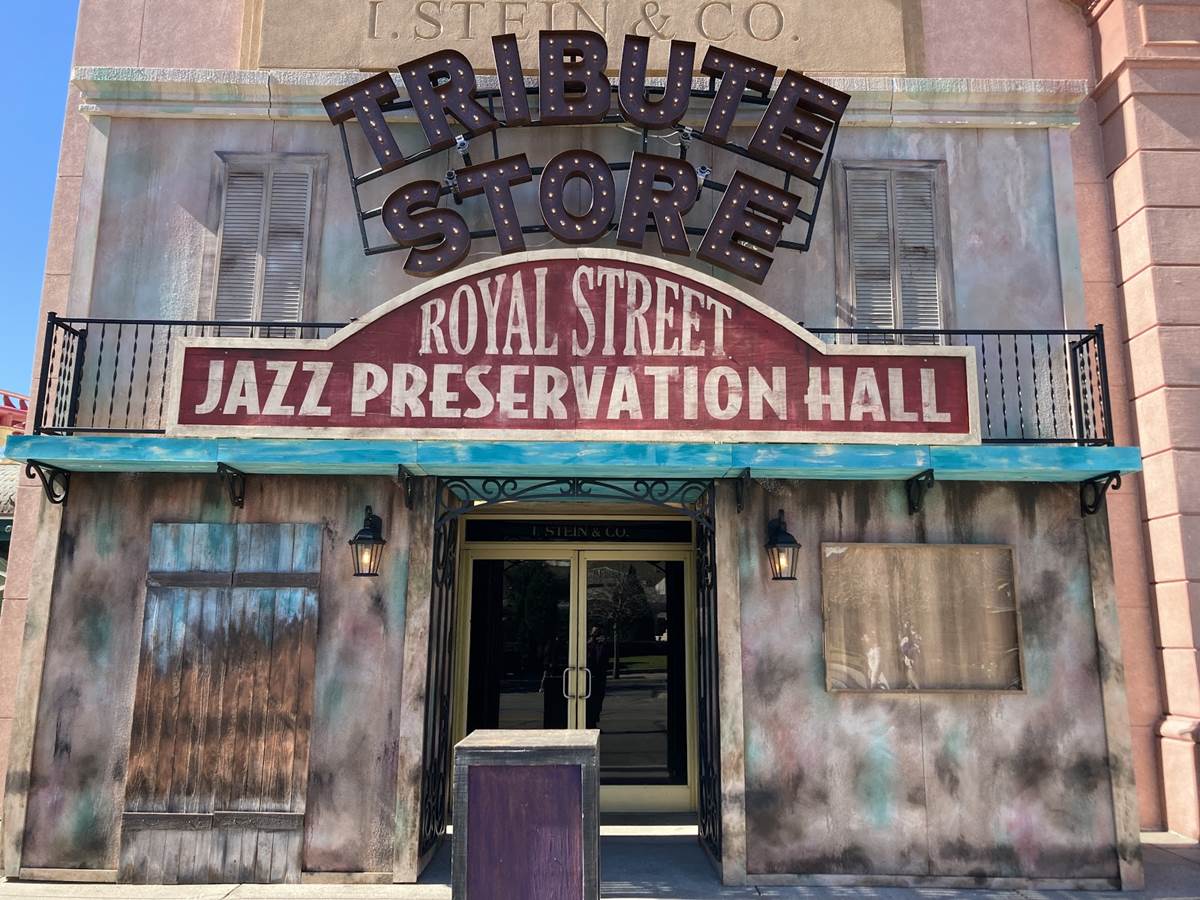 - The facade for the Mardi Gras Tribute Store went up today in the New York section of the park.