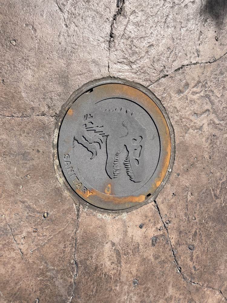 - We also noticed these amazing manhole covers that feature the logo for Jurassic Park as a whole, but also specifically used for the Tyrannosaurus Rex paddock. Dare we ask what they’re keeping down there?!