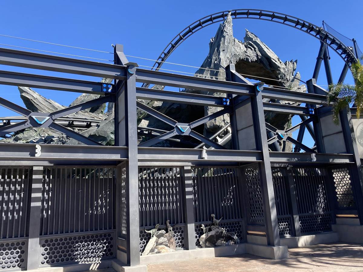 - Construction is a loose term as most of the visible work and coaster track is complete, and much of the efforts have been moved to the interior of the attraction. While it wasn’t occurring while we were there today, coaster trains have also been seen traversing the course of the layout while Team Members continue to test and adjust the new high speed thrill ride.