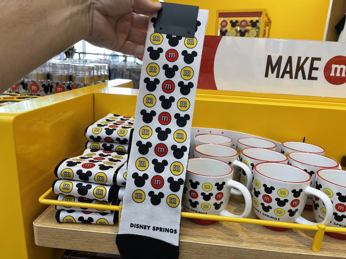 Earlier this month, it was revealed that this M&Ms World location would be home to new Mickey and Minnie Mouse M&M’s designs and packaging sold exclusively at Disney Springs. If that’s not exciting enough, the new store also offers a vast assortment of whimsical, Mickey-silhouette branded merchandise, including apparel and accessories.