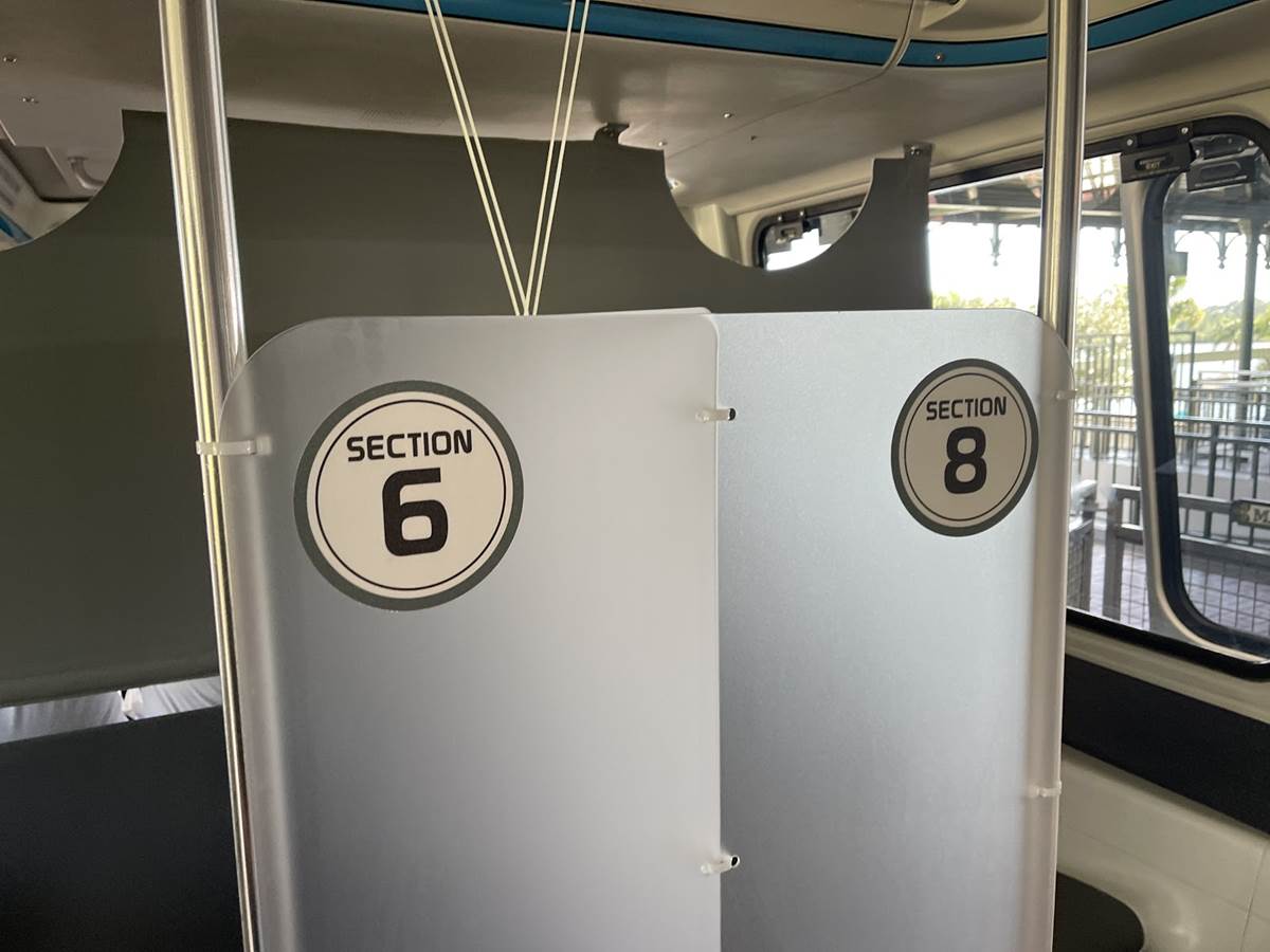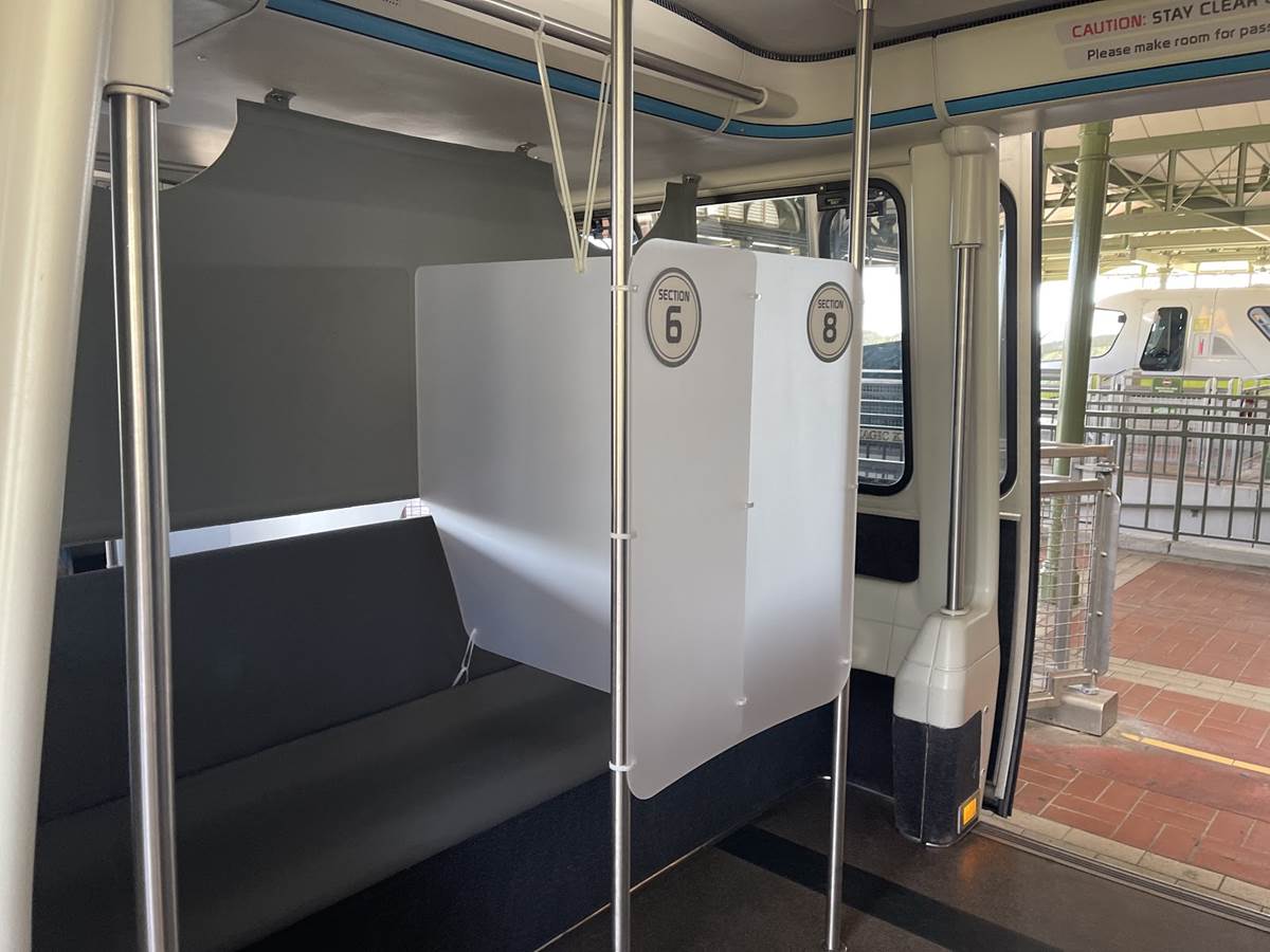 When the theme parks first reopened in July, partitions had been installed between connected Monorail cabins to reduce the amount of air flow that could pass between them. Additional steps are now being taken with Guests grouped into assigned sections on board each train, with partitions between them that keep air flow at a minimum.