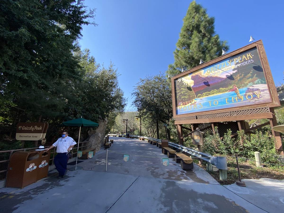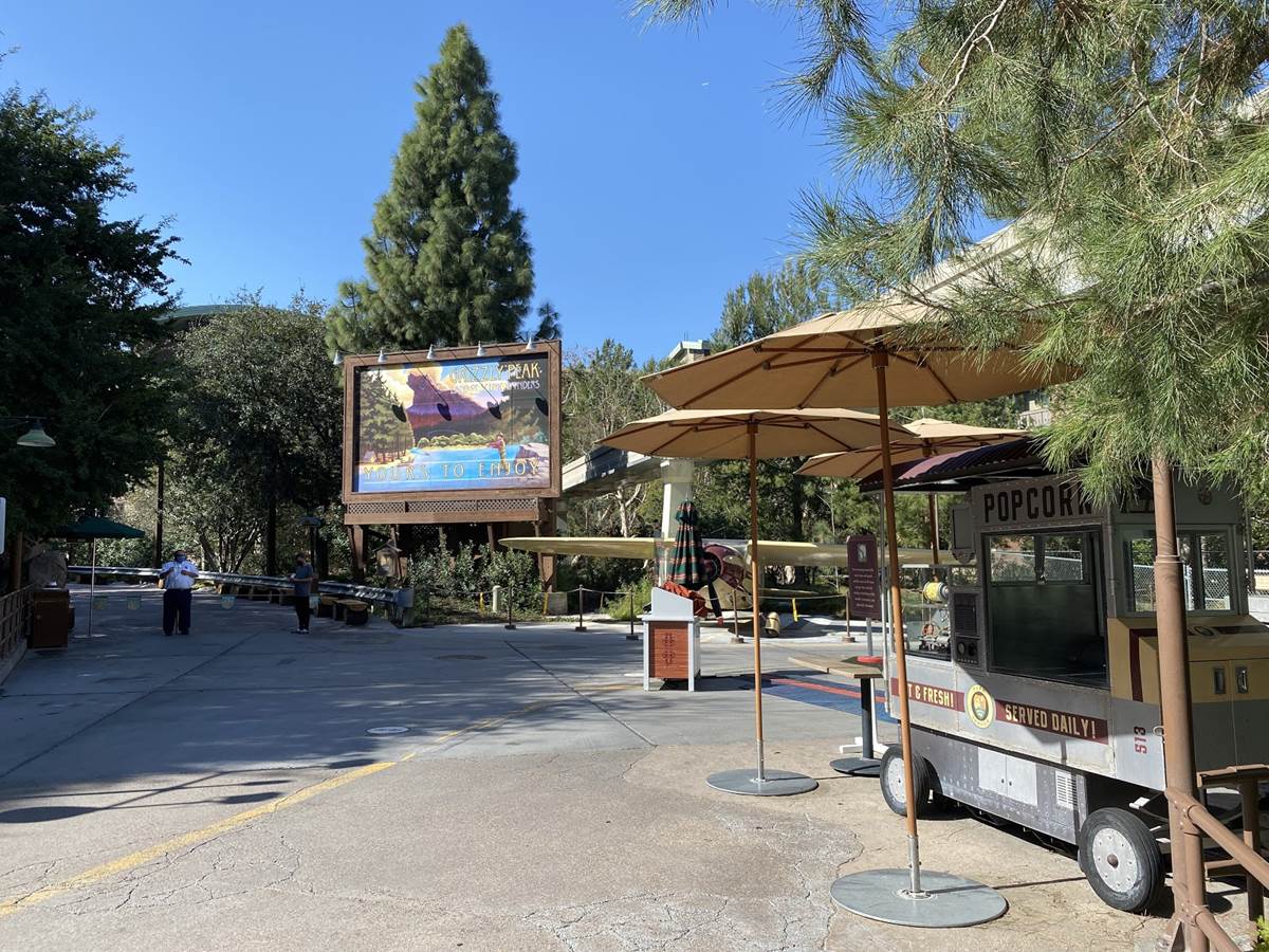 Meanwhile, in the Grizzly Peak Airfield, the barrier rope has been extended out once again to allow for dining at Smokejumpers Grill and the tables that have been placed in front of the Soarin’ building. Interestingly, the rope has been extended further then it was previously, going up to the Grizzly Peak billboard and allowing for guests to get up close to the Cessna plane that has been parked underneath the billboard since the park opened 20 years ago.
