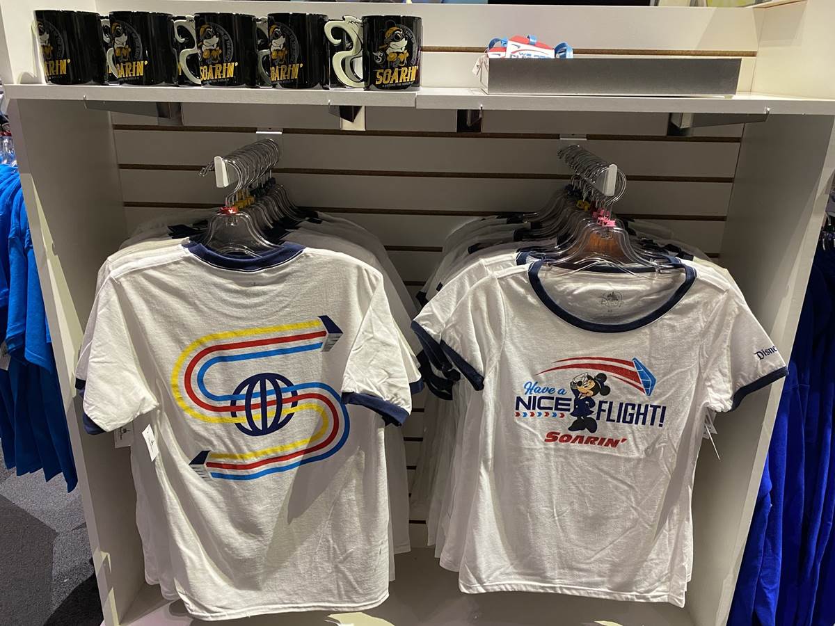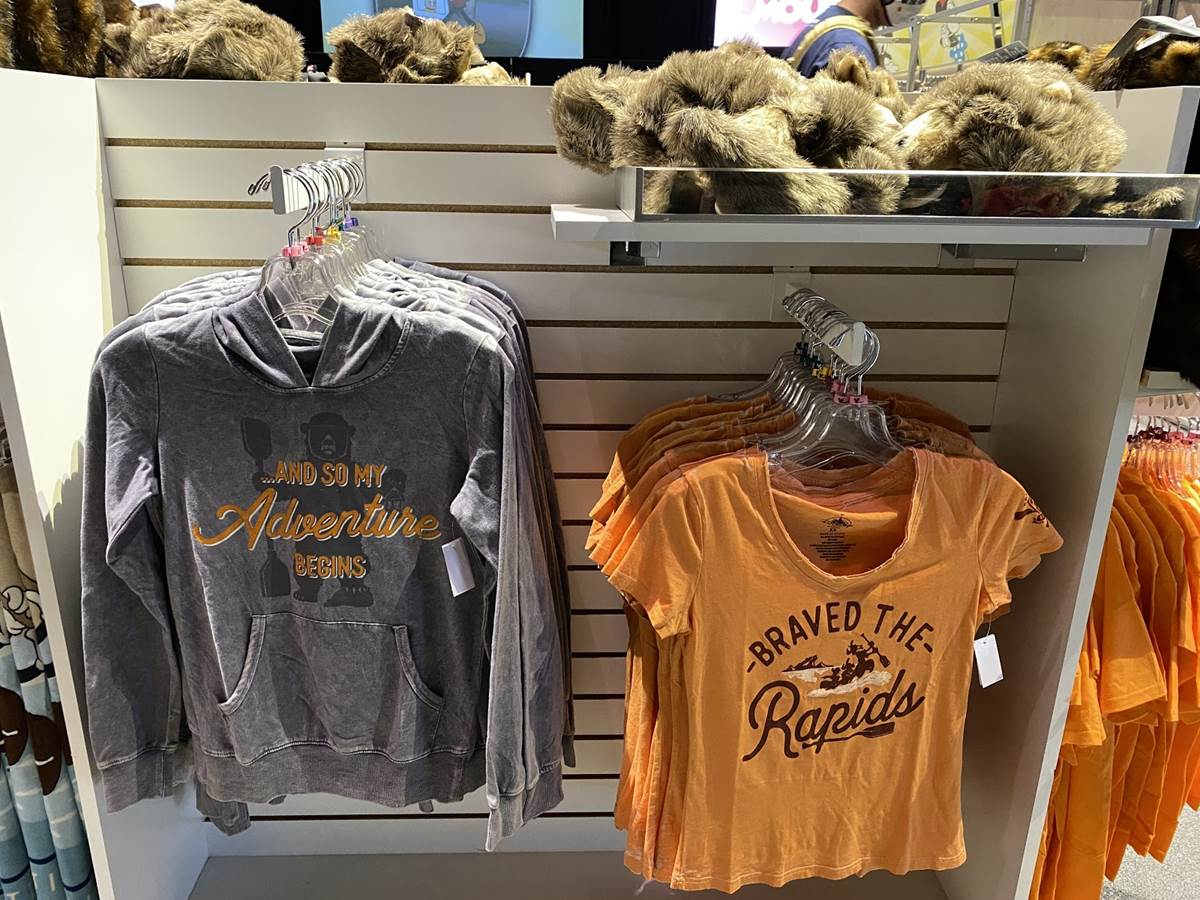 Over in the Backlot Premiere Shop, we spotted some gear featuring two classic Disney California Adventure attractions, Grizzly River Run and Soarin’. The apparel features the attraction logos, some mottos, and even a catchphrase from the innovative flight simulator that wowed guests on its debut in 2001.