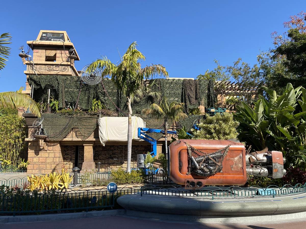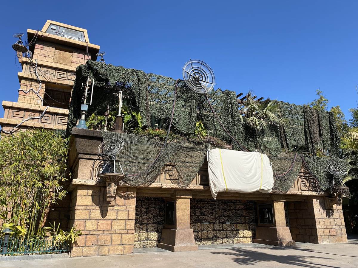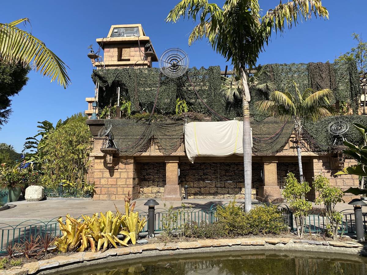 Earlier today, we were at the Downtown Disney District of the Disneyland Resort, and we were able to get a peek on the progress of the Star Wars Trading Post that will be opening soon in the former location of Rainforest Cafe, including the appearance of Rey’s Speeder.