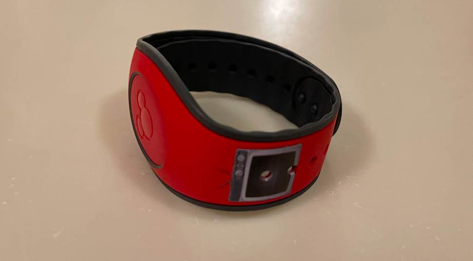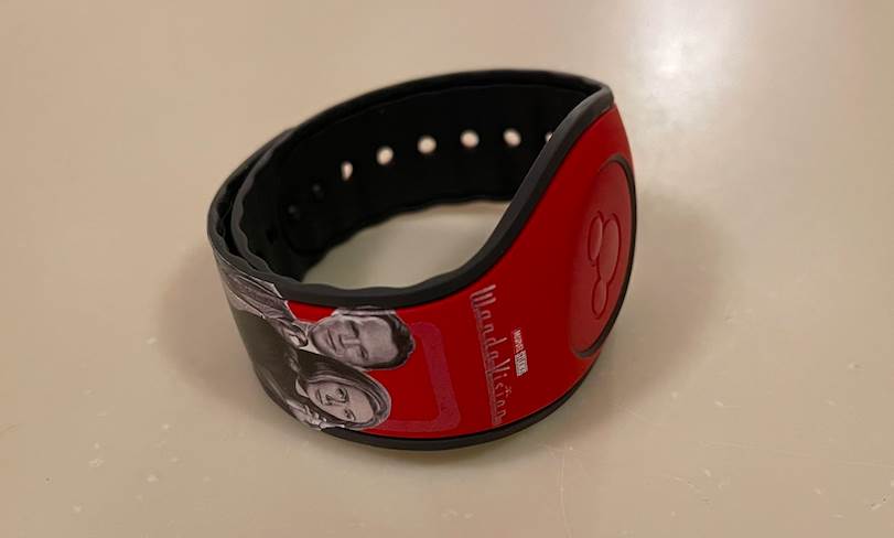 - The new MagicBand features a red band with Wanda and Vision in his human disguise on one side.