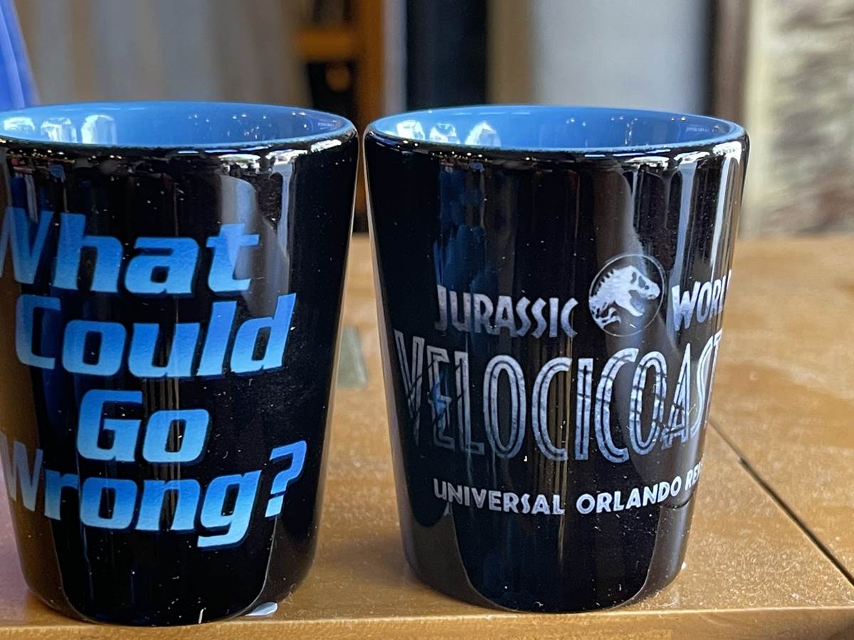 Shirts are available, including one that features an iconic quote from the original Jurassic Park, “Must Go Faster,” though that was in a scene featuring the T-Rex, and not the Velociraptors. The logo for the new coaster is also carried over into a tank top.