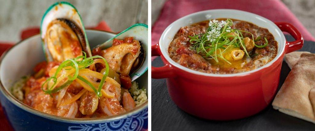 • Moroccan Seafood Couscous with Shrimp, Mussels, Olives, Preserved Lemons, and Anchovy Breadcrumbs (new).