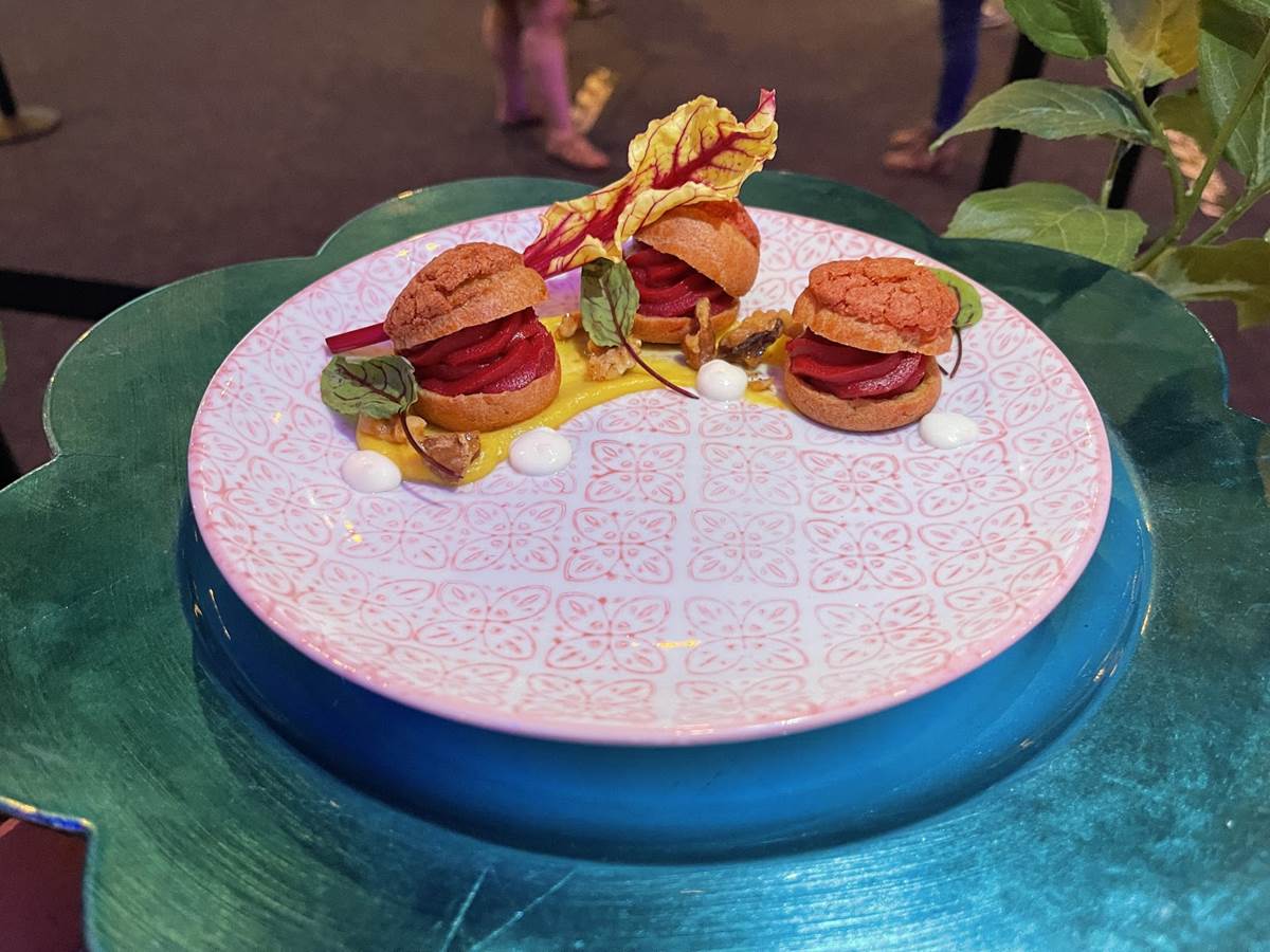 - Off the “Beet”en Path: Profiteroles with Red Beet Mousse, Golden Beet Pastry Cream, Whipped Goat Cheese Cream, and Candied Walnuts ($5.50)