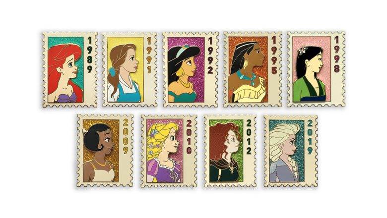 Pin traders will want to start their own “stamp collection” with this series of Disney Princess pins inspired by postage stamps, created especially for International Women’s Day, exclusively for D23 Gold Members.