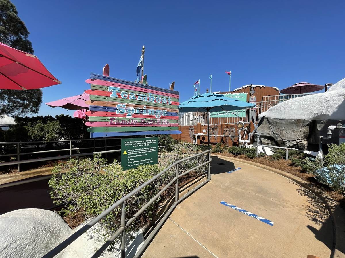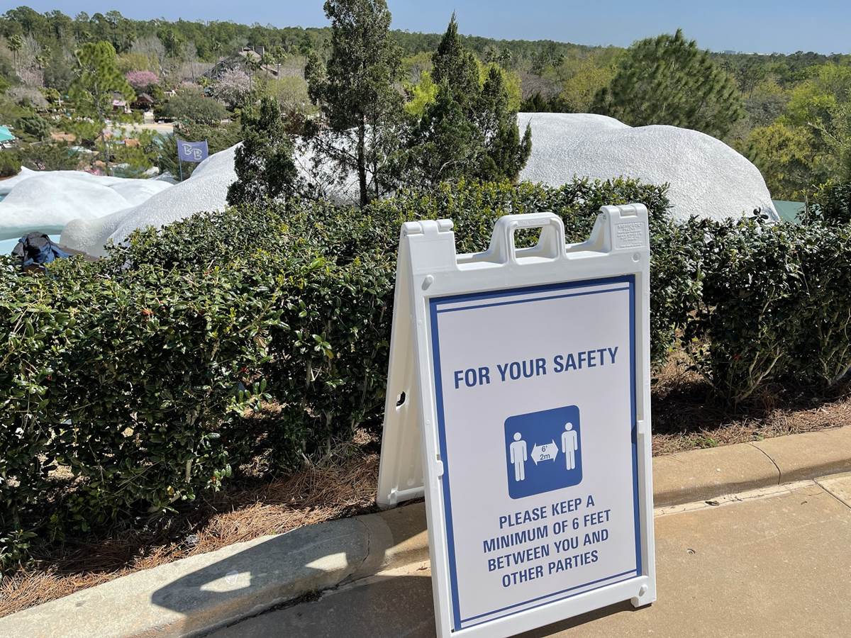 The need for social distancing precautions may not have been needed TODAY but they will be needed in the coming days, weeks, and months, with Spring Break just around the corner and the blistering heat of the summer months ahead with guests ready to hit the fake icy slopes to beat the heat, and with no date for Disney’s Typhoon Lagoon announced yet either, Blizzard Beach remains the only water park option for Walt Disney World guests. Signage, Queue Markers, and other efforts similar to those we’ve already seen in the theme parks are in place. Blizzard Beach’s Chairlift, taking guests to the top of Mt. Gushmore where many slides begin is also operating, though without the single rider line.