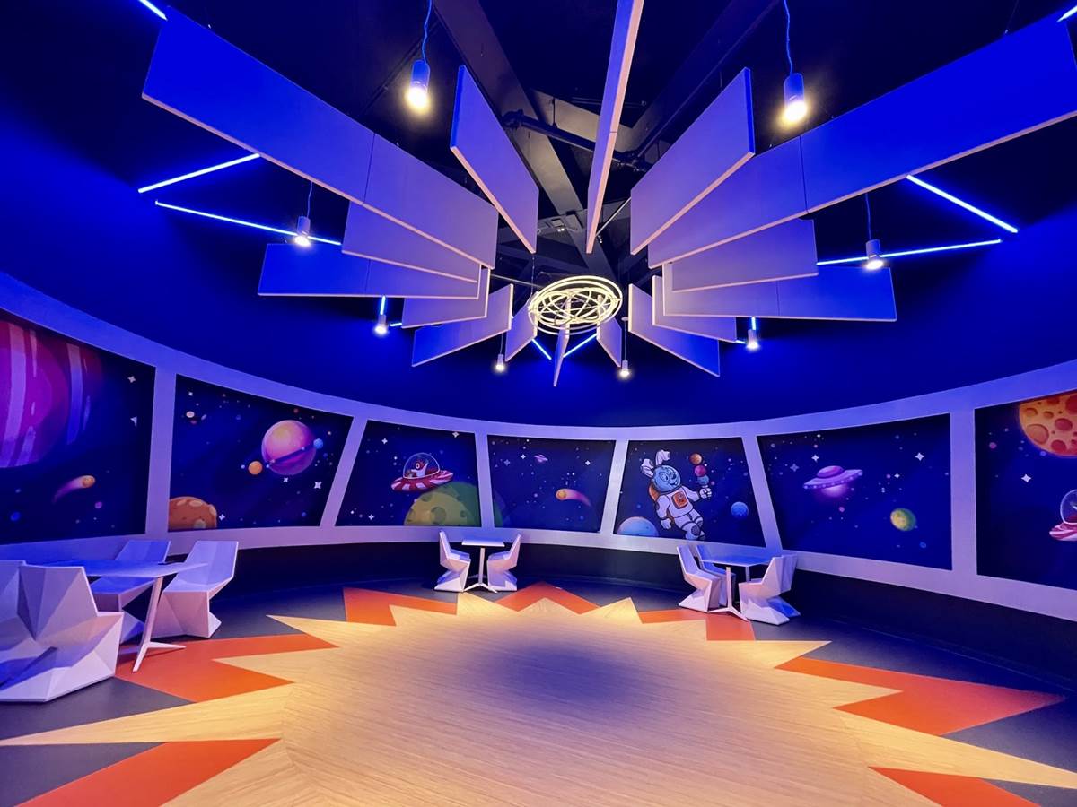 - Walls inside the rotunda feature false windows that offer a glimpse into space, as if guests are dining inside a 30-foot flying saucer, which sits atop the building.