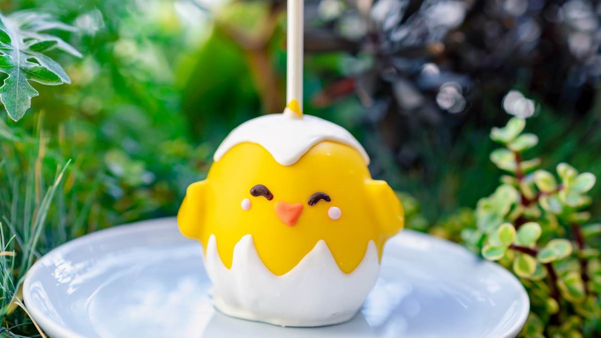 Yellow baby chick candy apple at Marceline’s Confectionery.