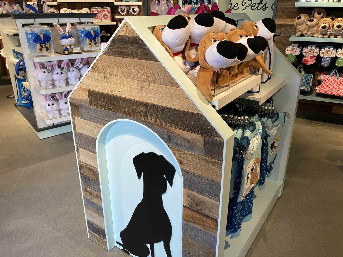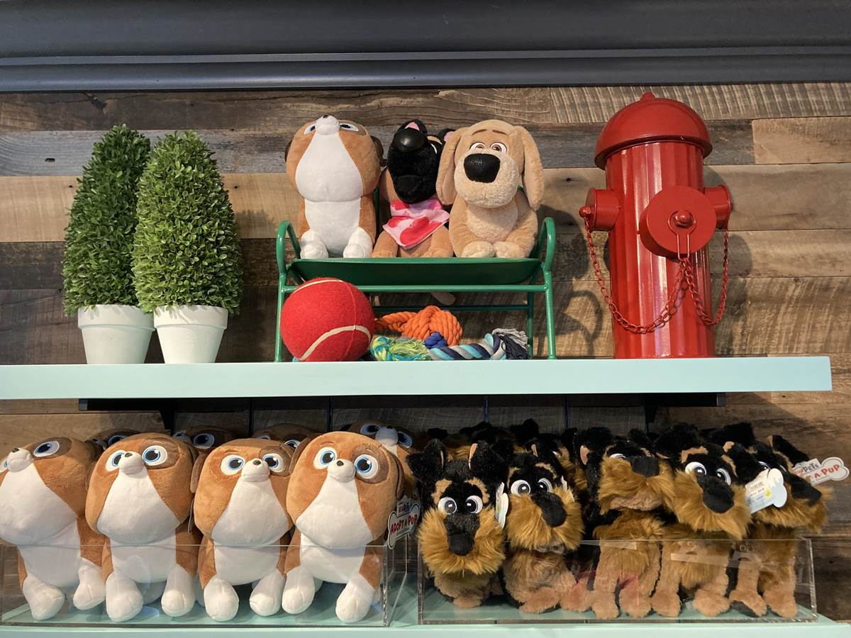 - The store also features some fun theming elements including a dog house, multiple fire hydrants and a rotating array of wigs for Gidget.