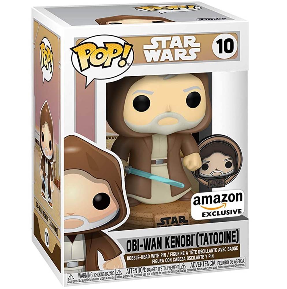 Funko Pop! Star Wars: Across The Galaxy - OBI Wan Kenobi with Special Edition Pin, Amazon Exclusive: “Travel to the desert planet Tatooine with the exclusive Pop! Obi Wan Kenobi with Pin. This special edition figure comes with a collectible Pop! pin of Obi Wan. Pop! Obi Wan Kenobi has a built-in, decorated stand and is a bobblehead. Pop! vinyl bobblehead is approximately 4-inches tall and the enamel pin is approximately 1.5-inches tall. Expand your Star Wars collection with the exclusive, special edition Pop! Obi Wan Kenobi (Tatooine) and collectible enamel pin! Available here only. This Obi Wan Kenobi Pop! and Pin is part of the year long "Across the Galaxy" series. Be sure to collect all the figures in the series!”