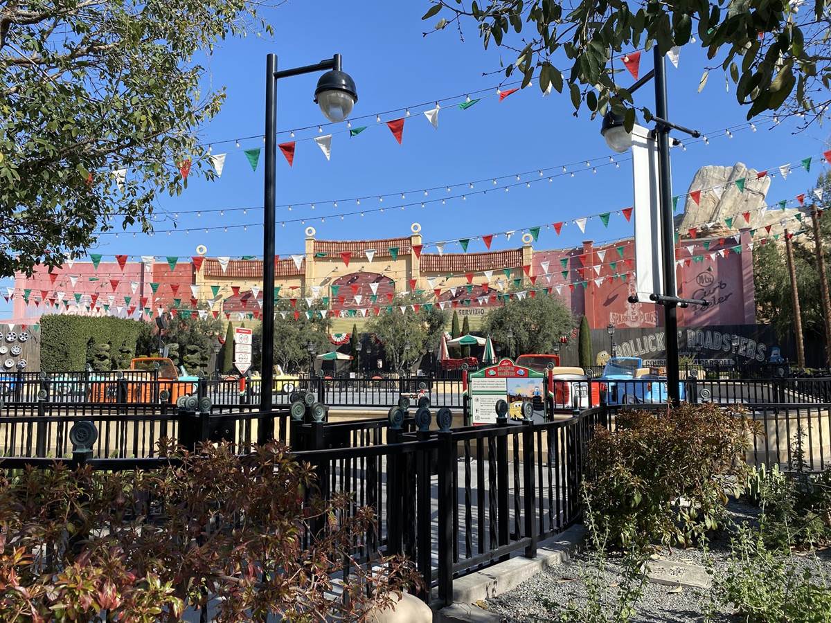 - One HUGE difference we saw lay on the outskirts of Cars Land at Luigi’s Rollickin Roadsters. Guests familiar with the location may remember a backdrop that was trees and a large fence that said “Rollickin’ Roadsters” on it. While all that is still there, there is now a substantially larger backdrop towering over those quaint trees and fence line.