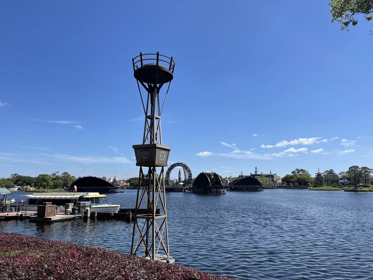 As you see from the photos, the view of World Showcase is sadly getting more and more difficult to view from the park as the barges move in, but hopefully, with the upcoming water features, it can give us a better look than what is currently out there.