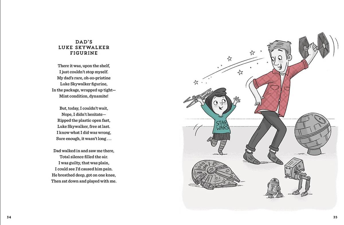 - Two of Doescher’s included poems, namely “I Wish I Had a Wookiee” and “Dad’s Luke Skywalker Figurine,” can be previewed alongside their respective illustrations in the image gallery below.