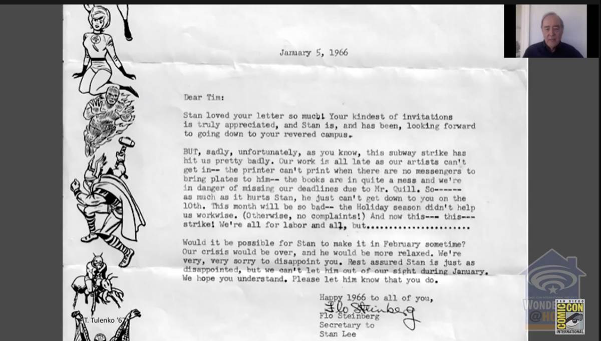 - Finding this out, he sent a letter to Marvel and got the following back, which led to getting Stan Lee to appear for a talk at the university.