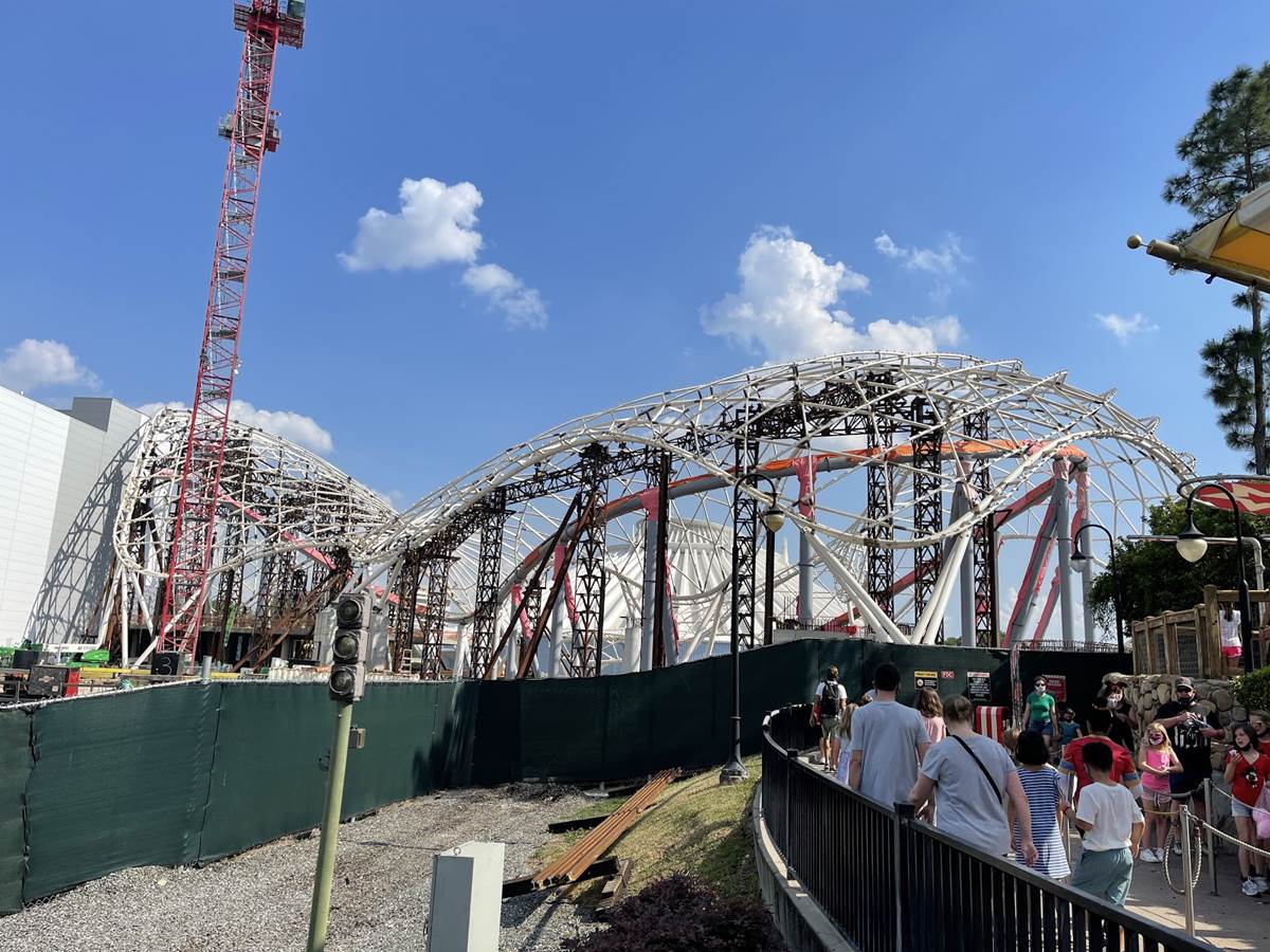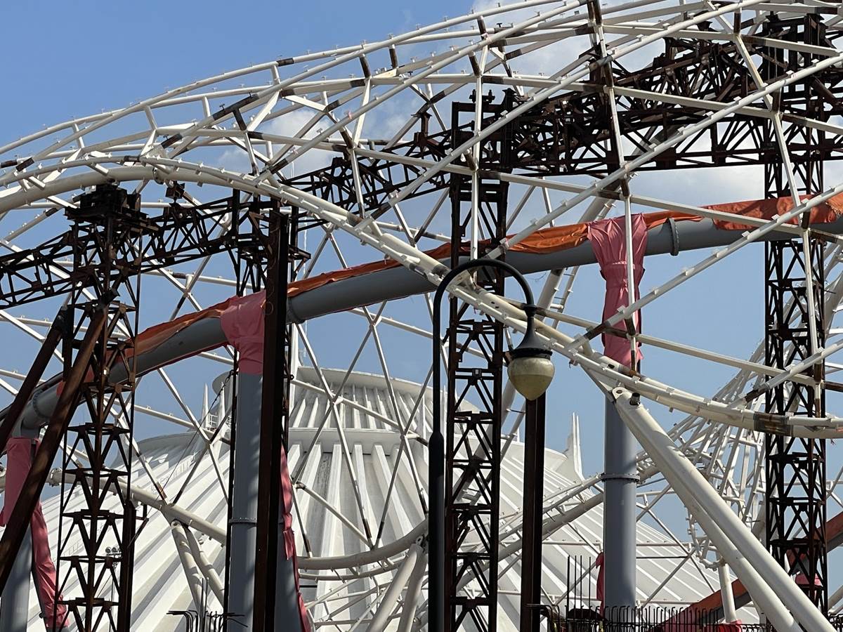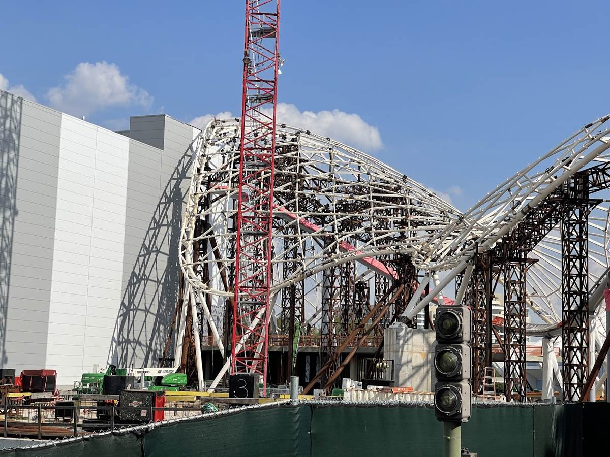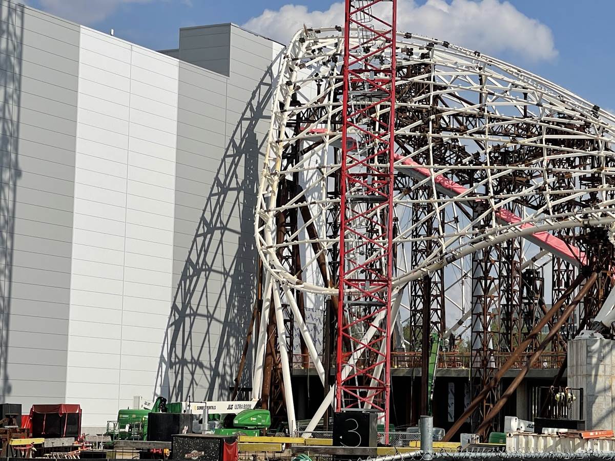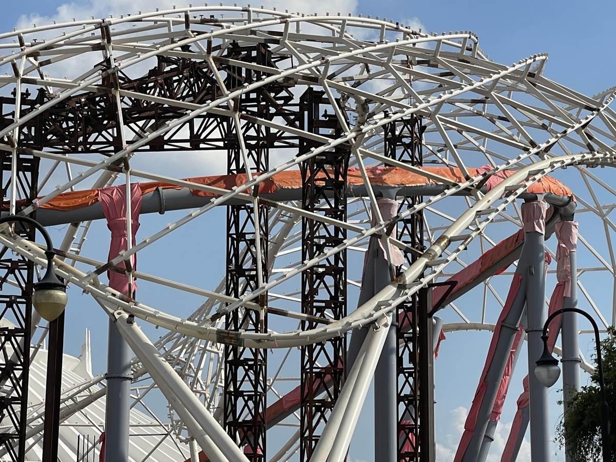 - In previous updates we noted that the coaster track wrap was removed or tattered, likely due to weather, but in these newer shots, it seems to be protected once again.