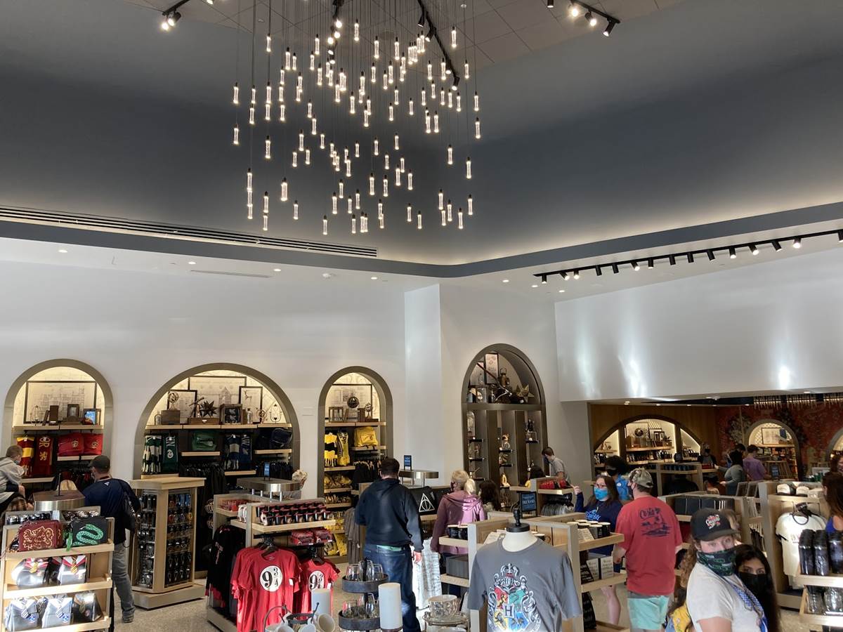 The interior of the store is new clean environment, similar to the Universal Studios Store found at Universal CityWalk and in the park at Universal Studios Hollywood. The usual park fare can be found at this location, including an abundance of Harry Potter merchandise, including wands from Ollivander’s inside both Wizarding Worlds, Hogsmeade and Diagon Alley.