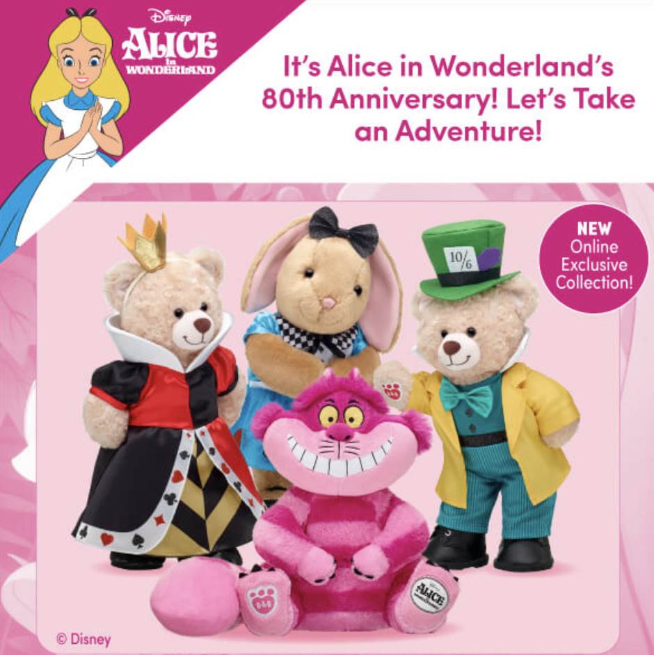 - Build-A-Bear has announced an online exclusive of Alice in Wonderland-themed plush and costumes that can be purchased to celebrate the film’s 80th anniversary.