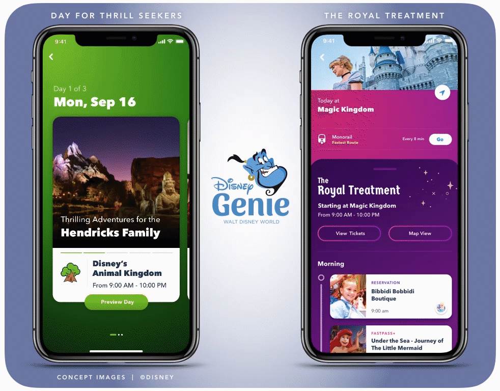 - Disney said back in 2019 that Disney Genie will make planning easier and more fun by providing customized itineraries geared to your interests, right at your fingertips – from a royal, princess-themed day at Magic Kingdom Park to a trip around the world at EPCOT for foodies and even a perfect day for thrill seekers. Certain features of Disney Genie will also be available through your preferred travel professional.