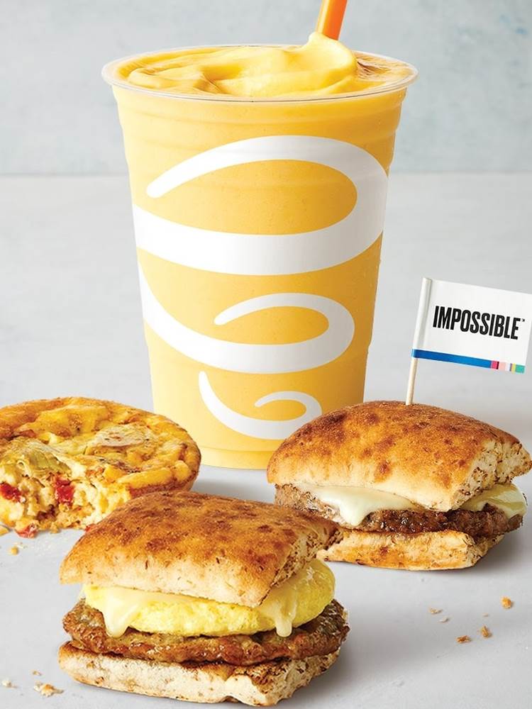 - IMPOSSIBLE™ Handwich (SRP $3.79): With IMPOSSIBLE™ Sausage Made From Plants, and made for people who love and crave meat, with fewer calories and less fat than traditional sausage. Crafted with your busy lifestyle in mind, each handwich is layered with melty white cheddar cheese between toasted sprouted grain buns, boasting 12 grams of protein and only 220 calories.