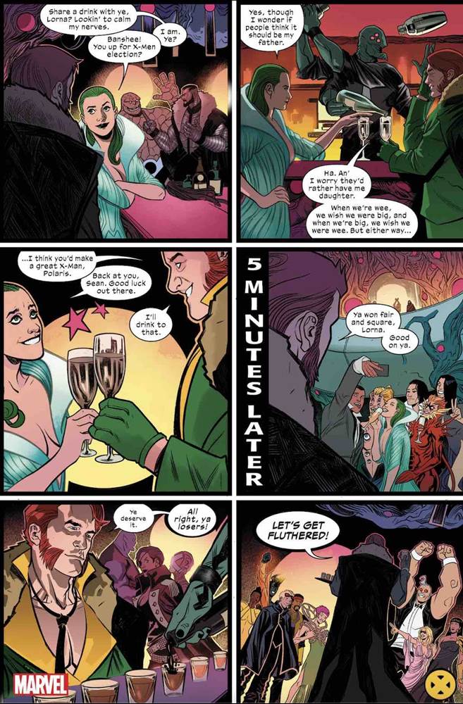 - Writer Gerry Duggan: “Pepe and I are thrilled to have Polaris aboard this year's X-Men team. Leah and David made her shine in X-Factor, and we're going to make sure she continues to rock in X-MEN. The outline is done and dusted, and every member of the team is going to have their issue not just to be the coolest mutant, but the most important character in the Marvel Universe for one month. Can't wait for you to join us. Hope you survive the experience.”