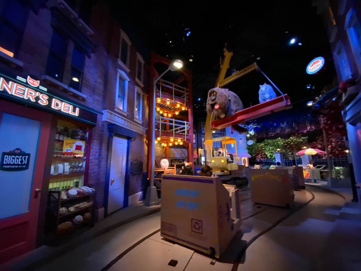 The ride portion starts off in the streets of New York City where you’ll turn to a window and see yourself in the reflection as a puppy. As you make your way through the city streets, you’ll see characters from the movie franchise all over town.