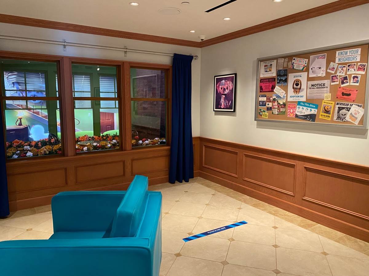 Once you enter, you’ll start off going through an apartment hallway with various screens showing characters from the movie. You can even peek through some door mail slot openings.