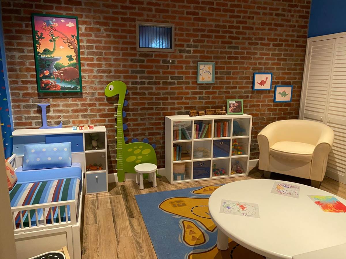 You’ll enter a room with the first of many animatronics in this queue line, this one featuring Buddy getting a massage in the kitchen.