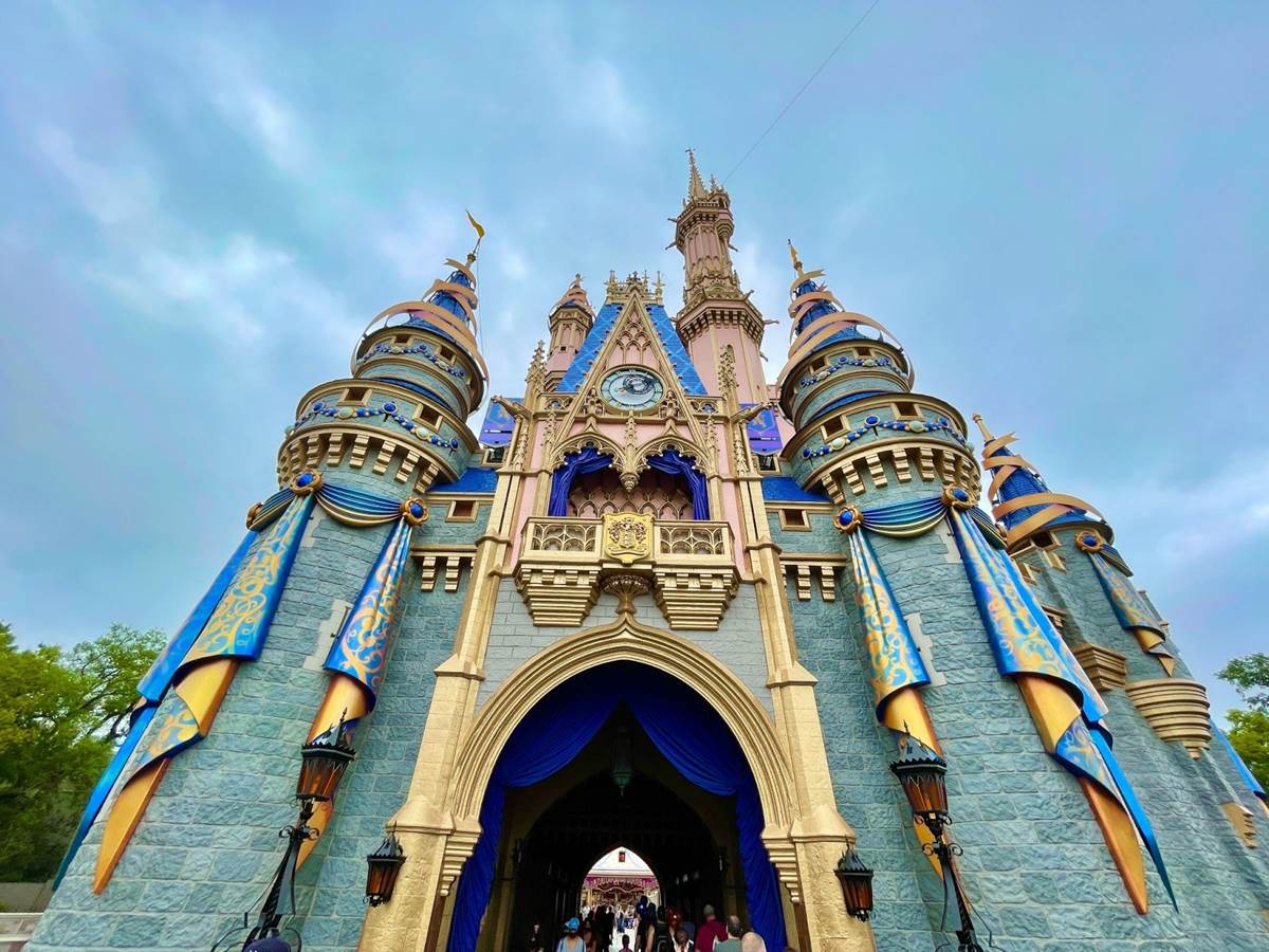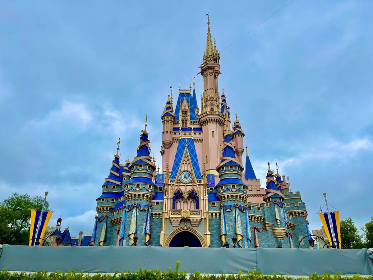 - Back when the World’s Most Magical Celebration was announced, we learned that Cinderella Castle will feature golden bunting, sparkling golden embellishments, and a 50th anniversary crest, much of which you can see in the images above.