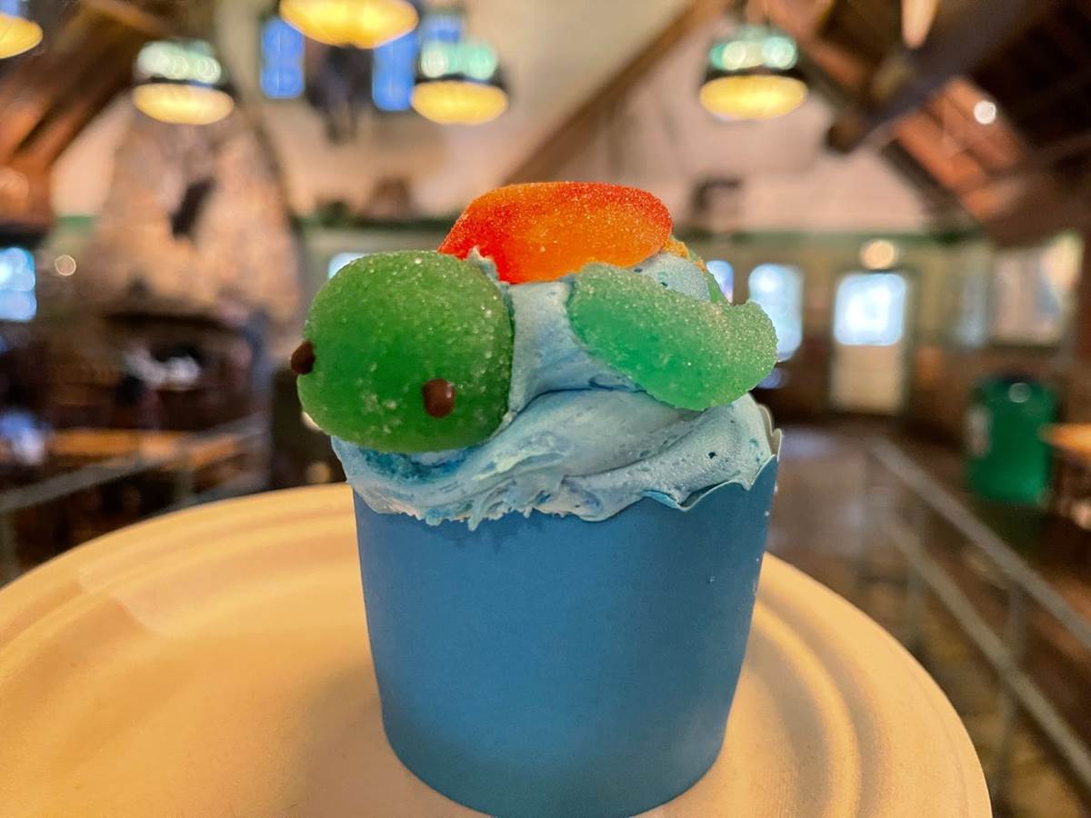 The key-lime sea turtle cupcake features an adorable gummy sea turtle riding the frosting wave.
