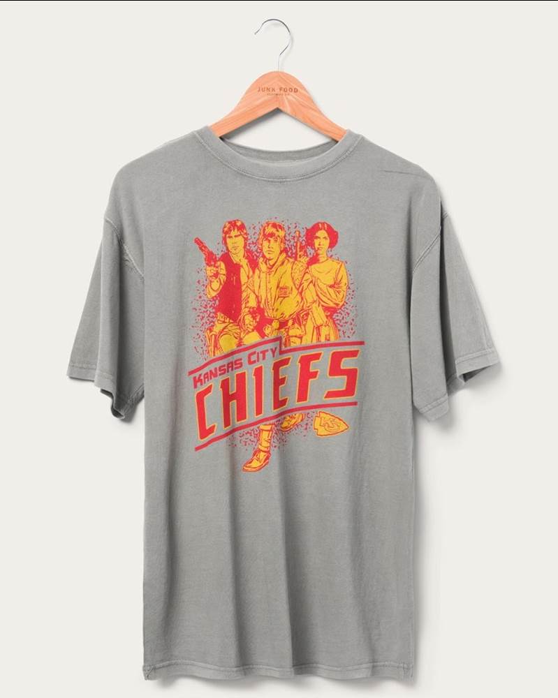 - "The Rebels Team" Tee highlights the characters Luke Skywalker, Han Solo and Princess Leia,