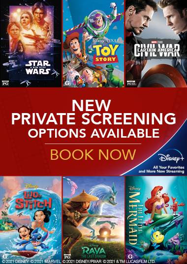 - The theatre has announced that even more films are now available to reserve for a private screening including Star Wars: A New Hope, Toy Story, Captain America: Civil War, Lilo and Stitch, The Little Mermaid, and Raya and the Last Dragon.