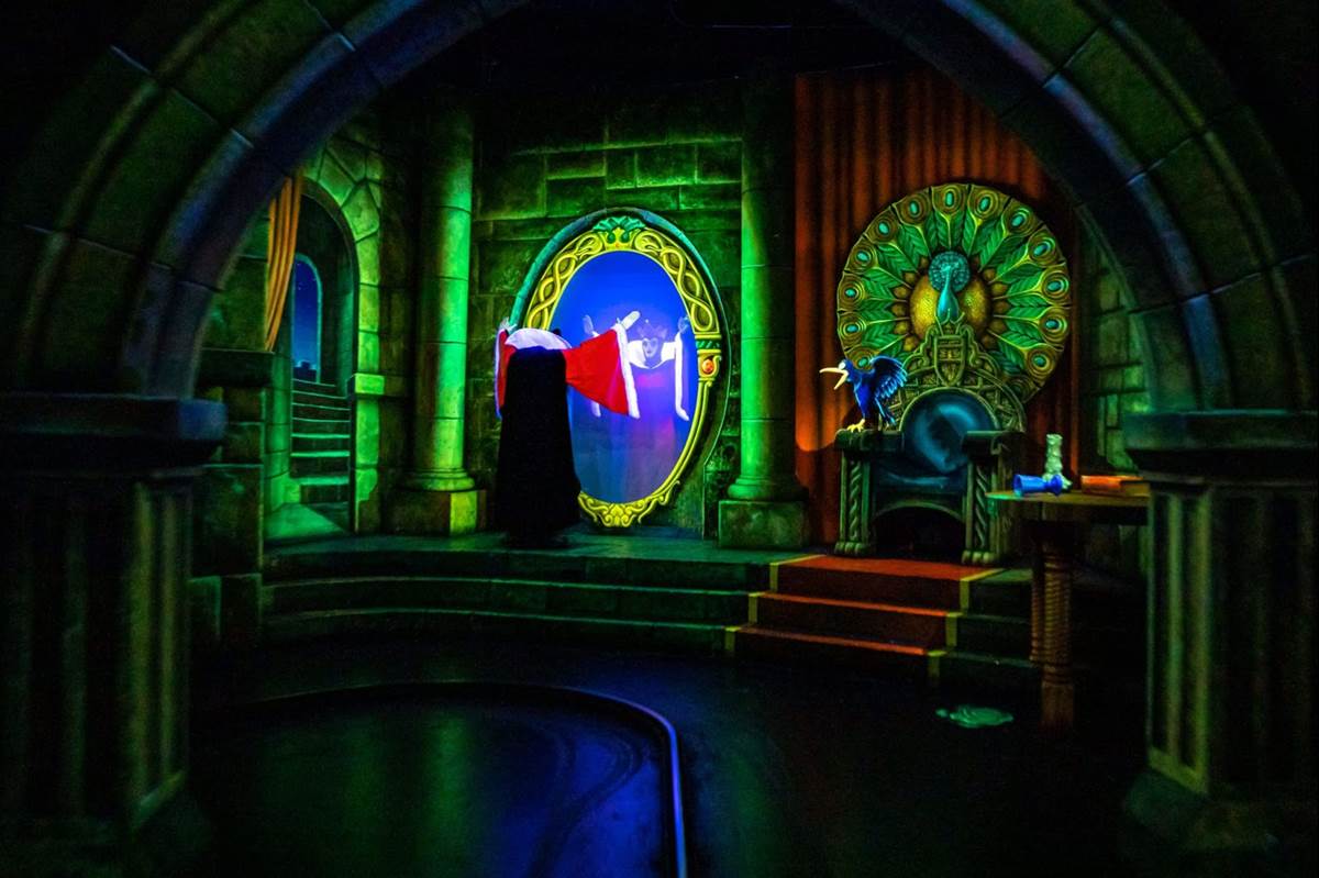 - Dave Caranci, manager of creative development, Walt Disney Imagineering: “You’re still going to feel a lot of suspense. The Evil Queen is still there outside the attraction opening the curtains. But there’s a warmer, inviting feel that’s drawing you inside and now it’s Snow White’s journey.”