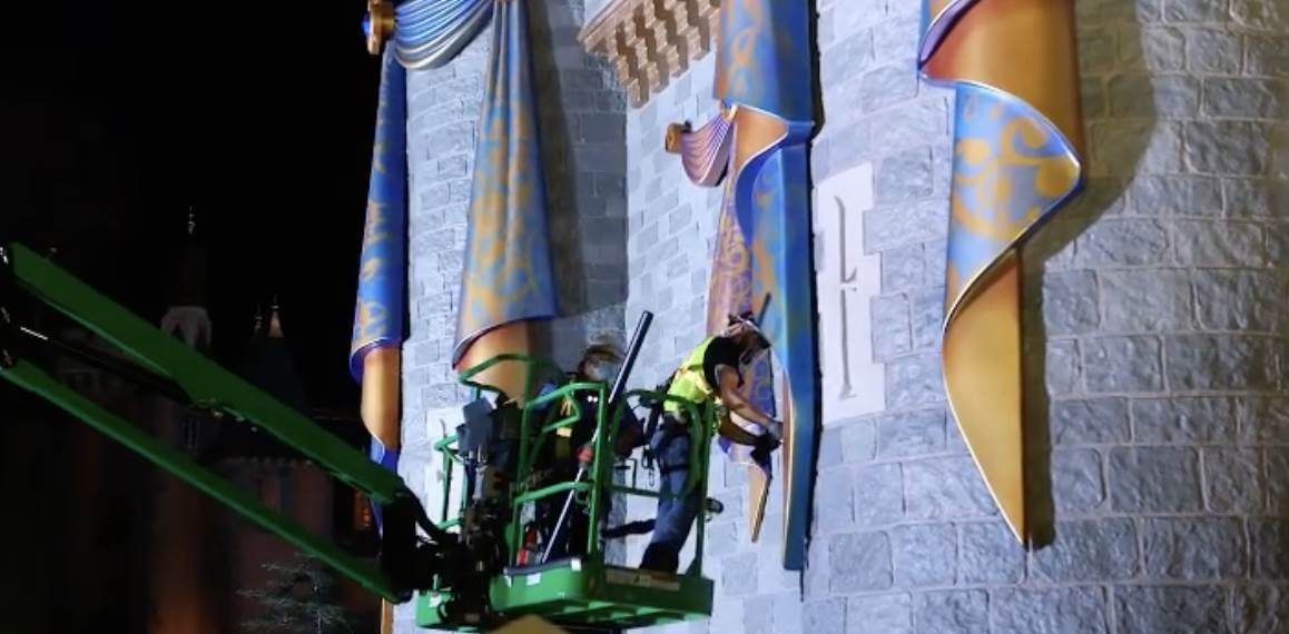 - Zach Riddley, Walt Disney World Portfolio Executive at Imagineering, shared a video showing the last bit of bunting and décor being added to Cinderella Castle for the 50th-anniversary celebration.