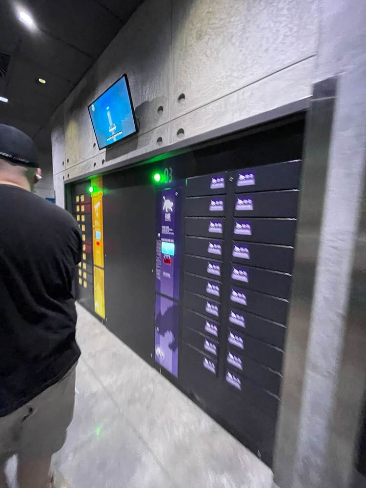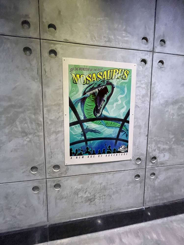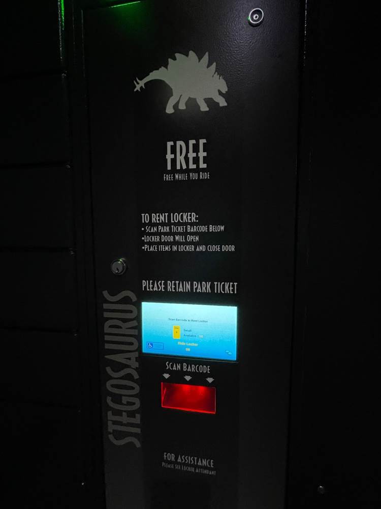 Similar to other coasters at the park, loose items and carry on bags and such are not allowed, and must be stowed in a complimentary locker. The lockers are themed to different dinosaurs to help remember your location, and fans will likely delight over the posters marketing other attractions of Jurassic Park/World, two of which are marked as “coming soon.” Could this be a hint towards a retheme of Camp Jurassic into Camp Cretaceous and/or a refurbishment of the River Adventure to be more like Jurassic World: The Ride at Universal Studios Hollywood? Also, as most coasters in the park feature a test seat, so does Jurassic World Velocicoaster.