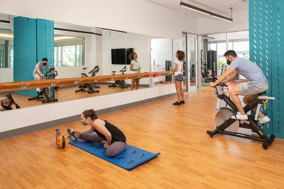 - Flamingo Crossing Village will have various ways participants can relax including walk-in pools, 24/7 fitness center, athletic courts, and grilling stations.