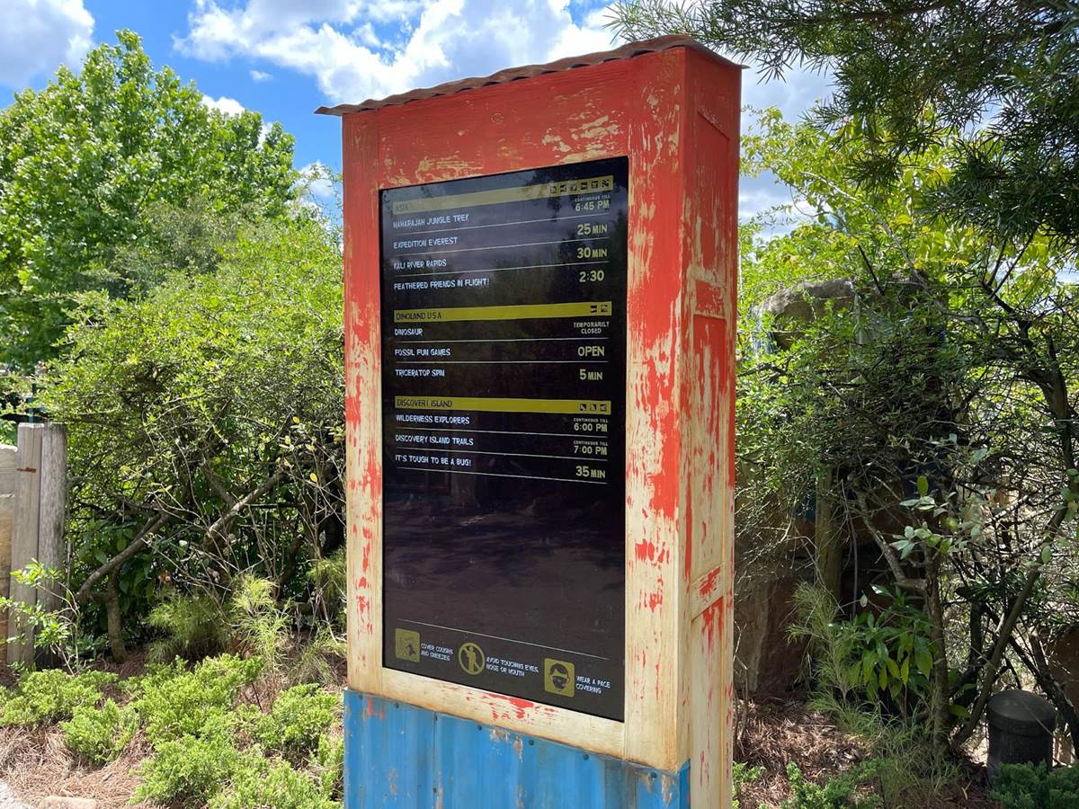 Over by Expedition Everest, we got a look at a new digital board providing guests with up-to-date wait times from around the park as well as other helpful information for their visit.